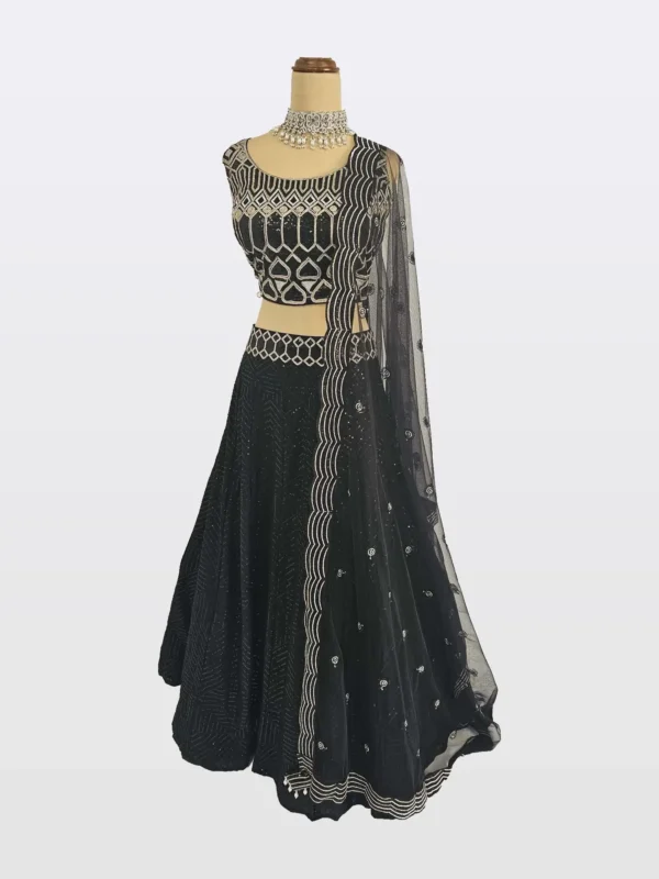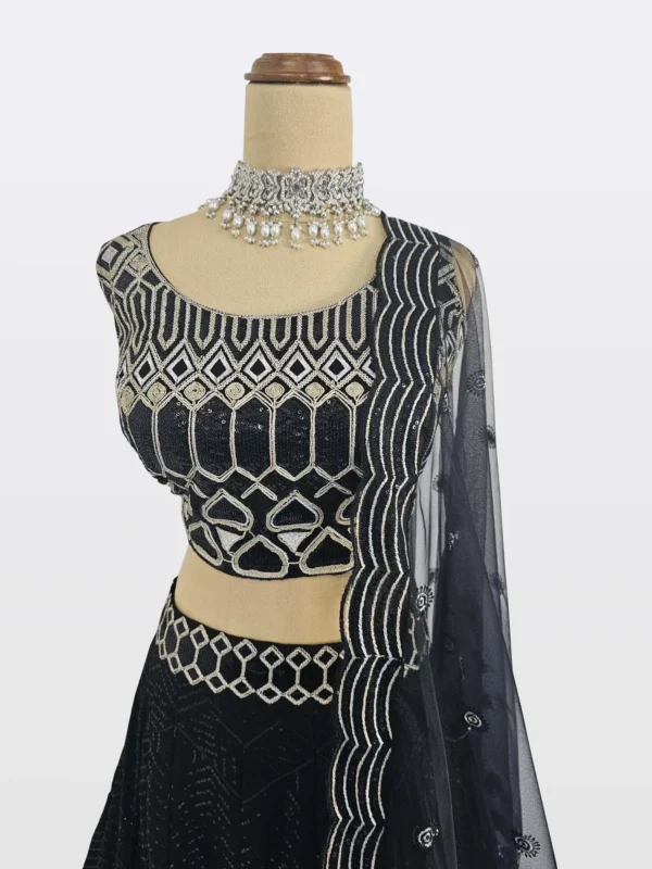 This Black colour sequin Lehenga Choli features exquisite, radiating vibrancy and elegance. this outfit makes a bold fashion statement.